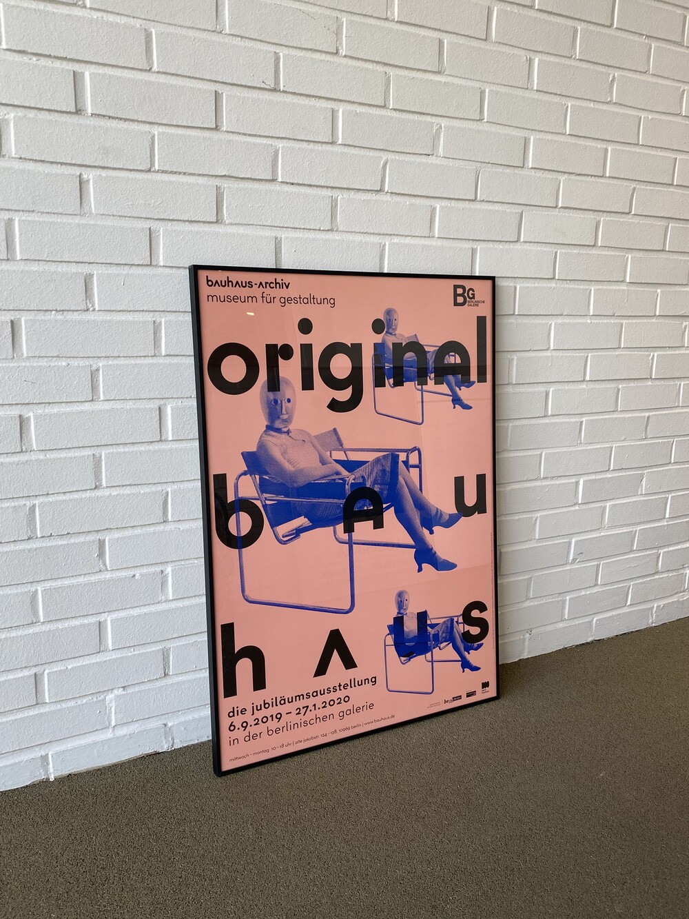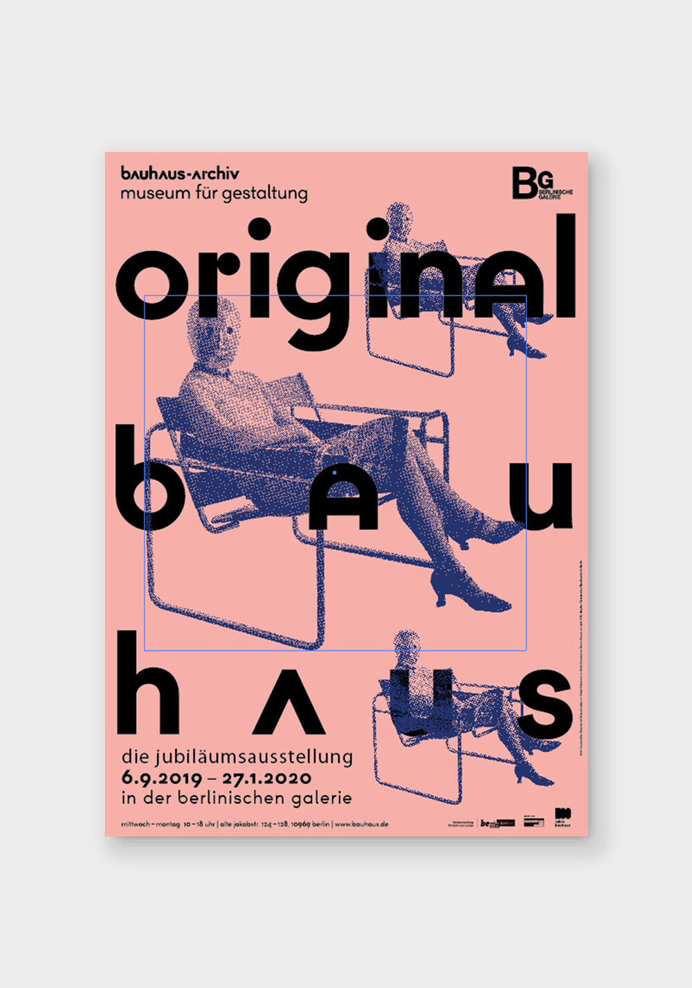 "오리지날 바우하우스" 기념 전시회 포스터: 바우하우스는 독일에서 14년 동안만 존재했지만 그 아이디어는 100년 동안 계속되었고 그 제품은 재발행, 모방 또는 추가 개발되었습니다. 바우하우스 설립 100주년을 기념하여 2019년 베를린 갤러리에서 열린 <bauhaus-archiv/museum für gestaltung> 전시회에서는 유명하고 잘 알려져 있으며 잊혀진 바우하우스 원본을 전시하고 사물 뒤에 숨은 이야기를 들려줍니다. 전시에는 바우하우스 아카이브 컬렉션의 예술과 디자인, 국제 컬렉션의 특별 대출, 바우하우스 유산을 새롭게 바라보는 예술적 위치가 있습니다.