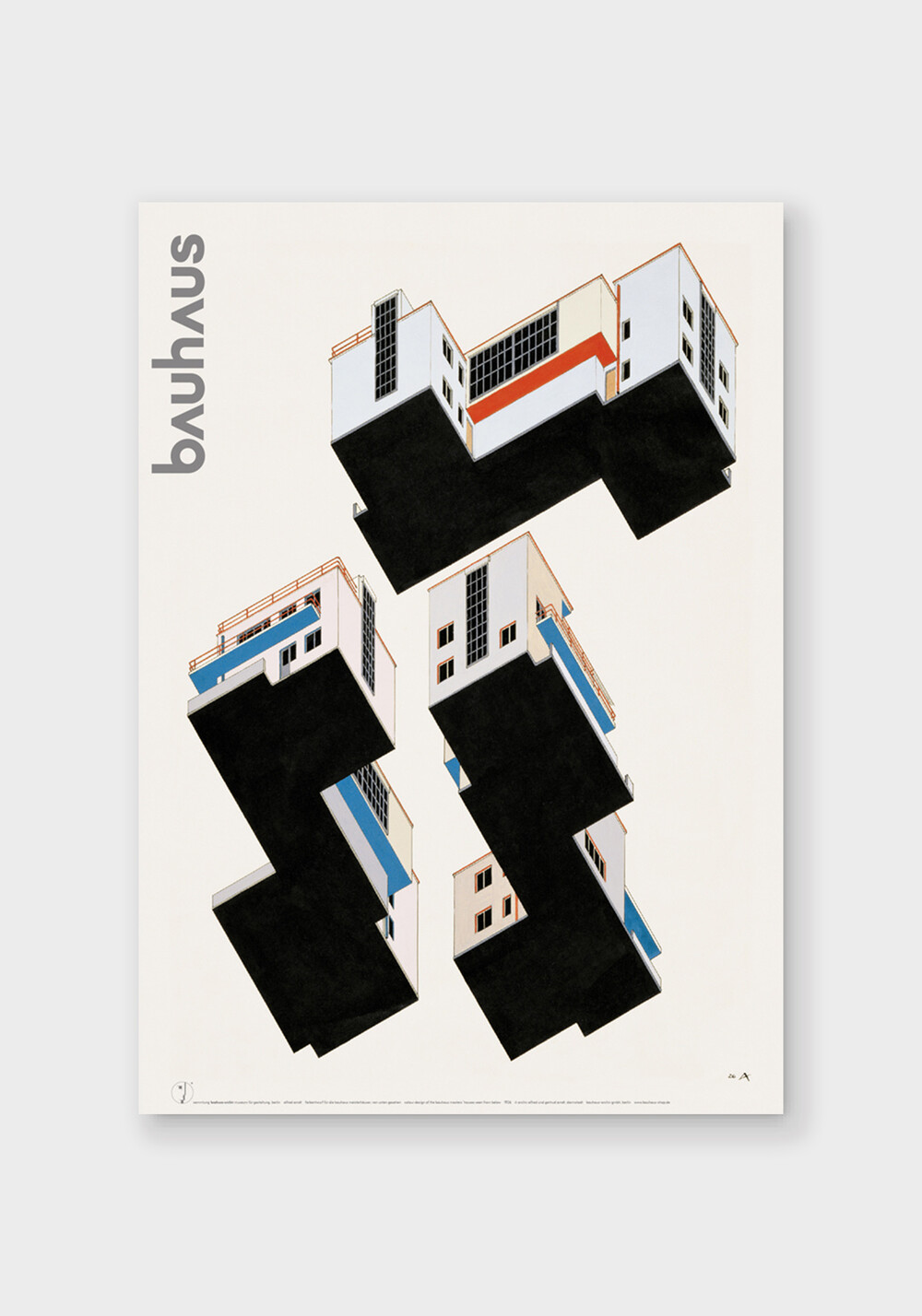 1926년, 독일 데사우에 있는 바우하우스 건물을 건축하는 동시에 바우하우스 교수들을 위한 주거용 건물이 지어졌습니다. 알프레드 아른트 (Alfred Arndt)는 세 채의 집을 계획합니다. 외벽은 연한 노란색, 분홍색, 밝은 회색으로 마감하고 발코니, 창문, 난간은 대조적으로 빨간색과 파란색 으로 디자인했습니다. 실제로 이 계획이 바우하우스 건물에 적용되지는 않았습니다. 알프레드 아른트의 디자인은 베를린 바우하우스에 소장되어 있습니다.