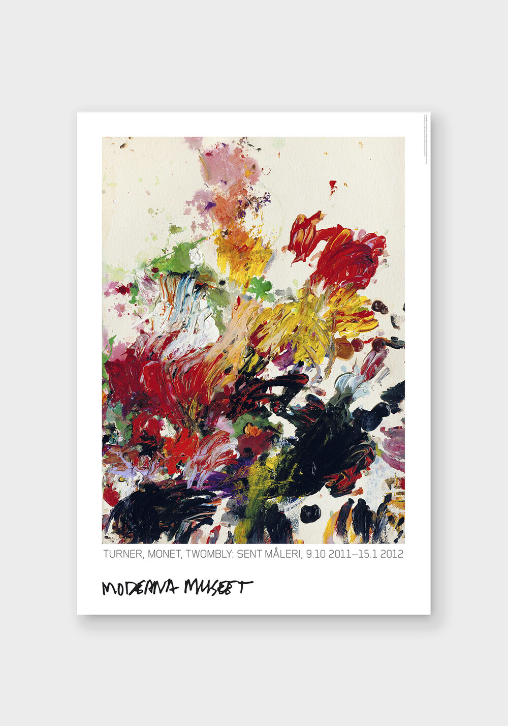 스웨덴 스톡홀롬 근대 미술관에서 LATER PAINTINGS(8.10 2011 – 15.1 2012) 전시가 개최되었습니다. 윌리엄 터너 (1775–1851), 클로드 모네 (1840–1926) 그리고 사이 톰블리(1928–2011)는 각각 그들 자신의 시대에 존경 받기도 하고 욕을 먹었던 미술사에 족적을 남긴 아티스트입니다. 그들을 비난하는 사람들에 따르면, 그들은 무모한 방법으로 그림을 그렸고, 지지자들에 따르면, 그들은 그림의 경계를 허물었다고 이야기 합니다. 톰블리는 자신을 19세기의 위대한 화가들과 연관시키는 '낭만적 상징주의자'라고 묘사했습니다. 터너의 작품처럼, 그의 작품들은 신화와 역사를 연상시키고, 또한 현대 문화에서 고전적인 언급의 상실을 애도합니다. 모네는 터너의 작품을 자세히 보았고 톰블리는 둘 다의 열렬한 팬이었습니다.