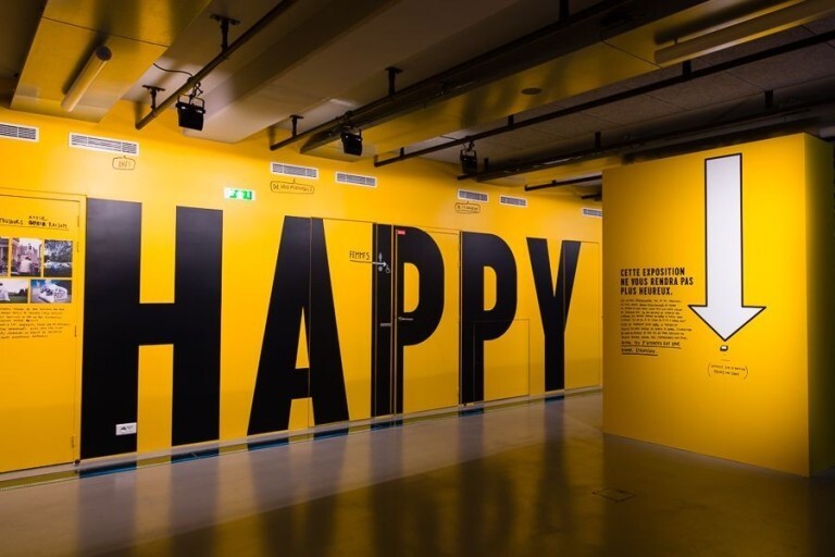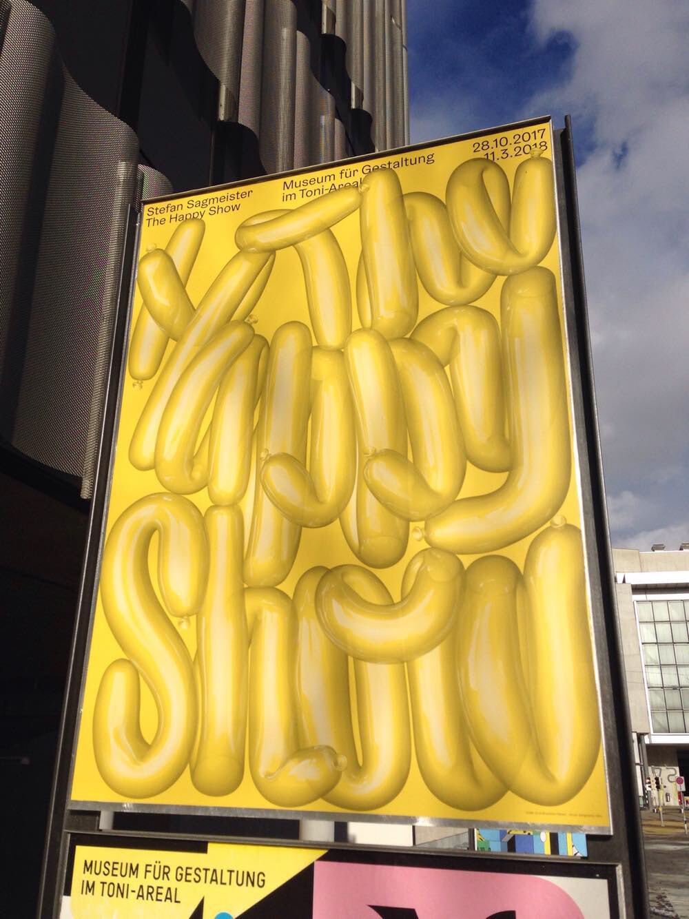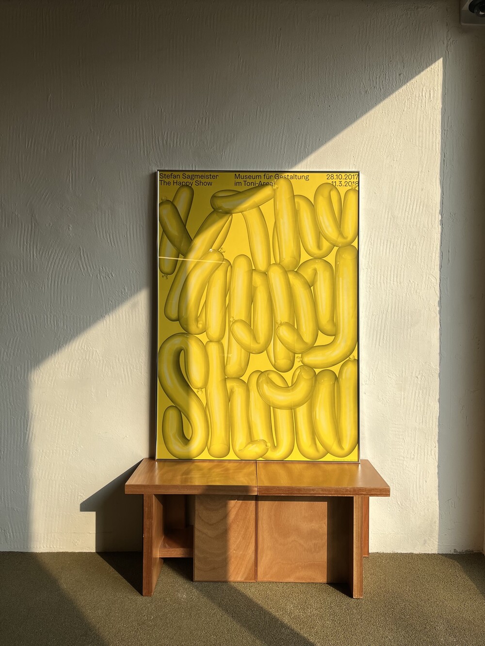 Poster for the Museum of Design Zurich that exhibits Stefan Sagmeister's Happy Show