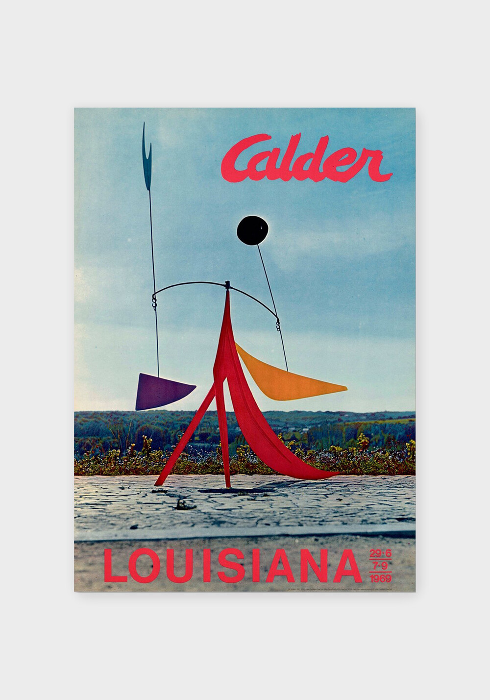 미국 예술가 알렉산더 칼더는 그의 조각으로 유명하며, 루이지애나 카페에 가봤다면, 카페 앞 파티오에 늘어선 세 개의 칼더 조각상을 분명히 본 적이 있을 것입니다. 1969년 루이지애나 미술관에서 열린 칼더 전시회에서 전시된 서서 움직이는 모빌 작품인 <The IGUANA>의 오리지널포스터 입니다.