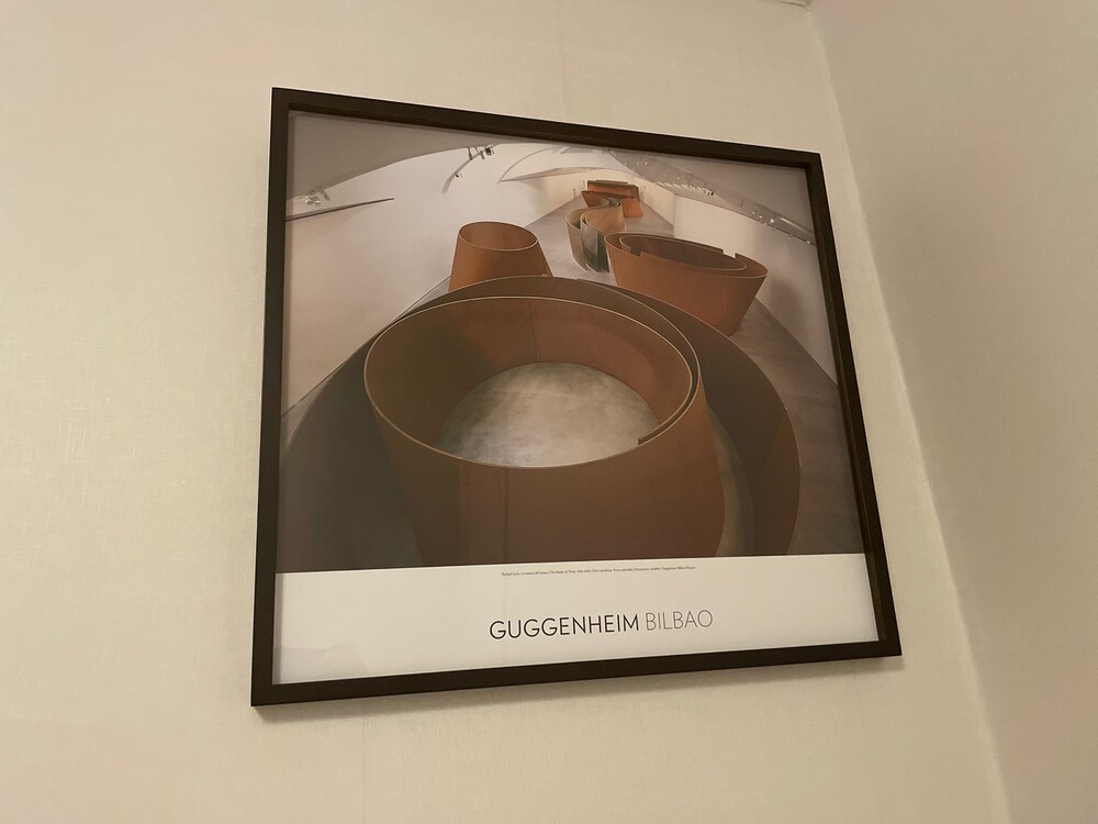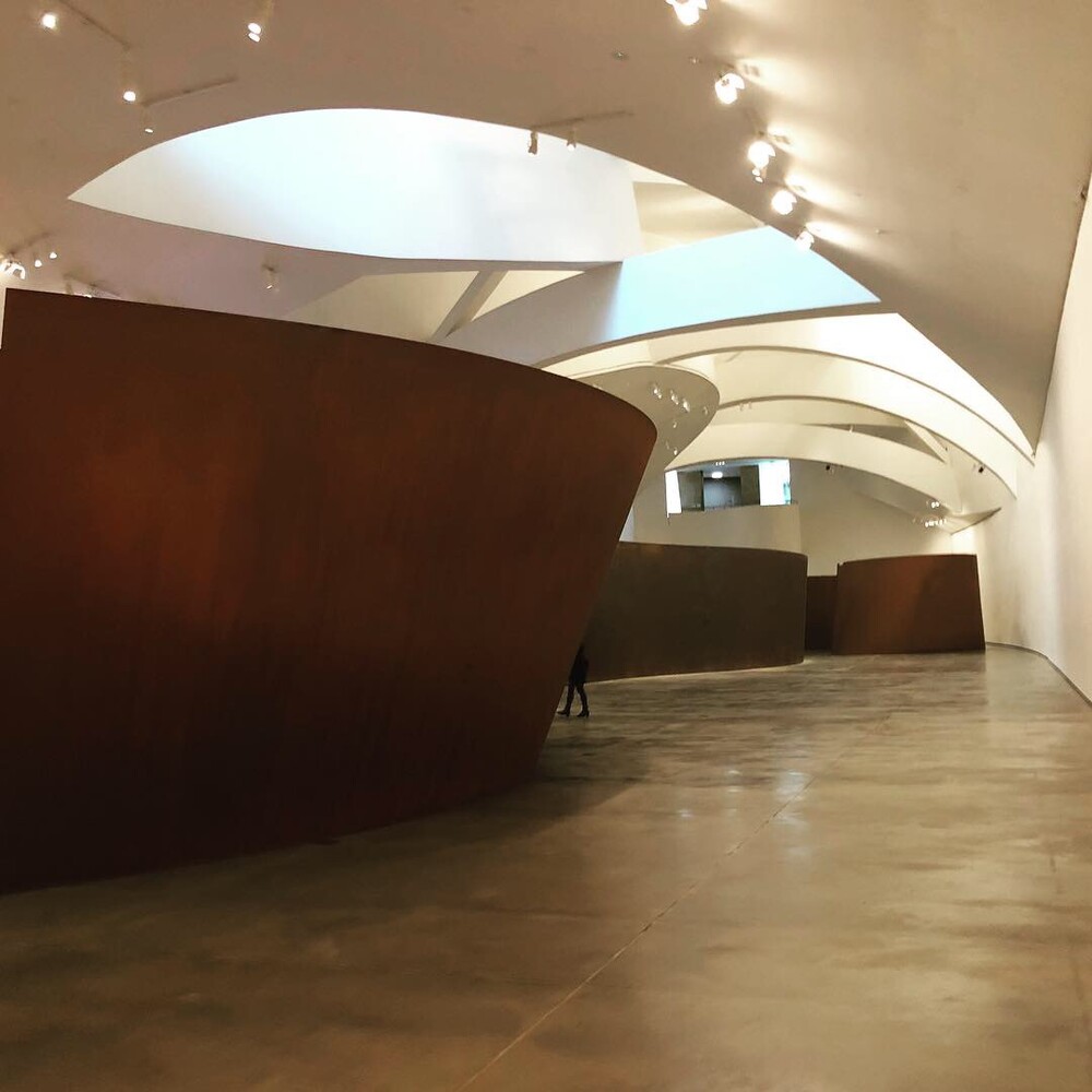 빌바오 구겐하임 미술관에서 전시된 <The Matter of Time> 포스터 입니다. <The Matter of Time> 은 1994년부터 2005년까지 9년간 제작된 거대한 조각 작품으로 공간과 조각작품의 관계를 잘 표현한 작품 중 하나입니다. 관객들은 나선형으로 제작된 작품 내부를 따라 갈 수 있으며 미로 형태의 작품을 거닐며 특별한 감각을 체험할 수 있습니다. 이 작품은 구겐하임 미술관에 영구설치 되어 있습니다.